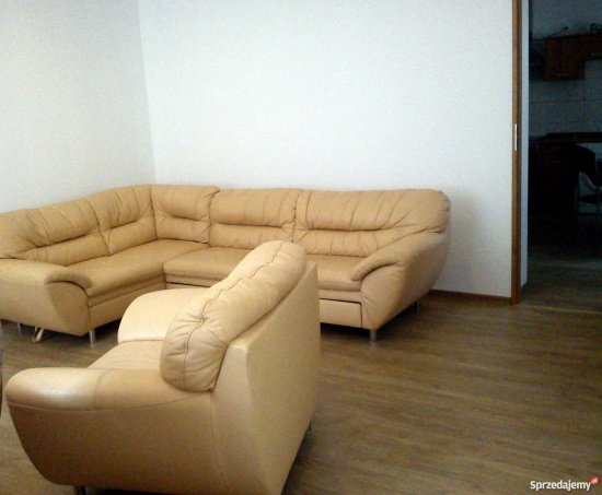 Pokój sypialno-gościnny : duży, piękny skórzany narożnik rozkładany ( z funkcją spania ), szafa wnękowa z lustrem, stół dębowy + 4 krzesła, komoda, stolik rtv